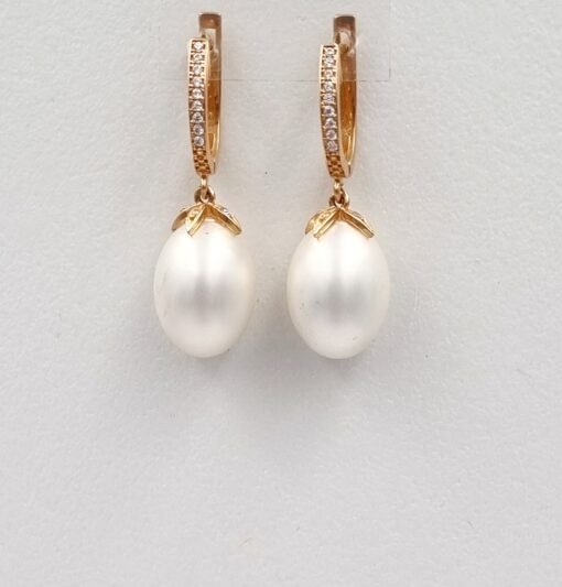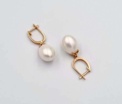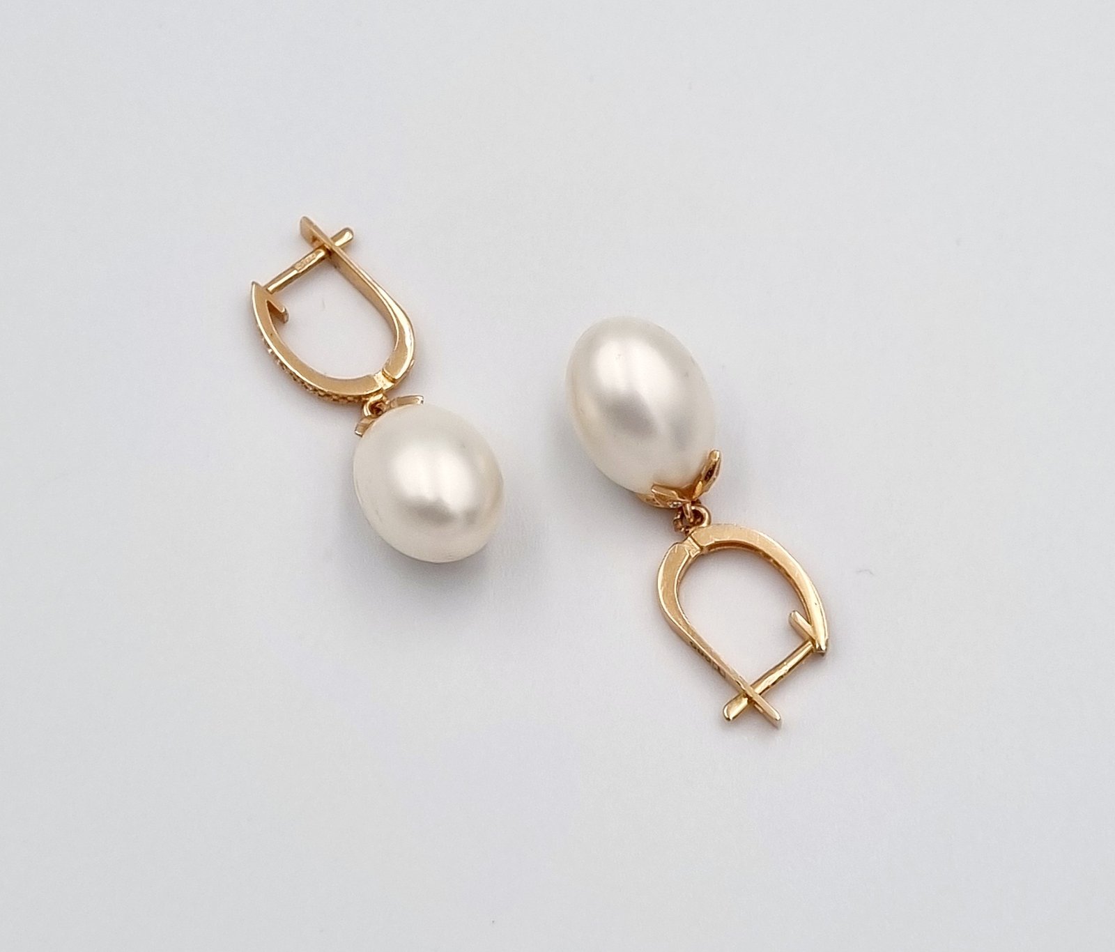 Auksiniai auskarai su maljorkos perlais ir cirkonio akutėm.