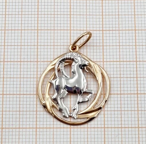 Raudono ir balto aukso zodiako ženklo pakabukas- Ožiaragis.
