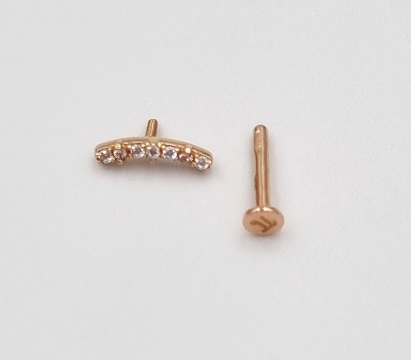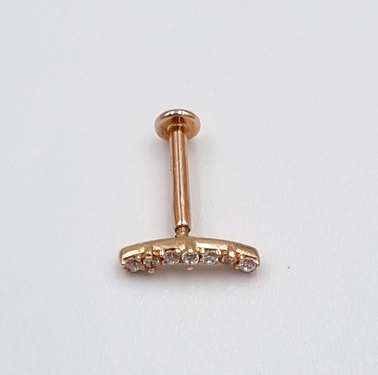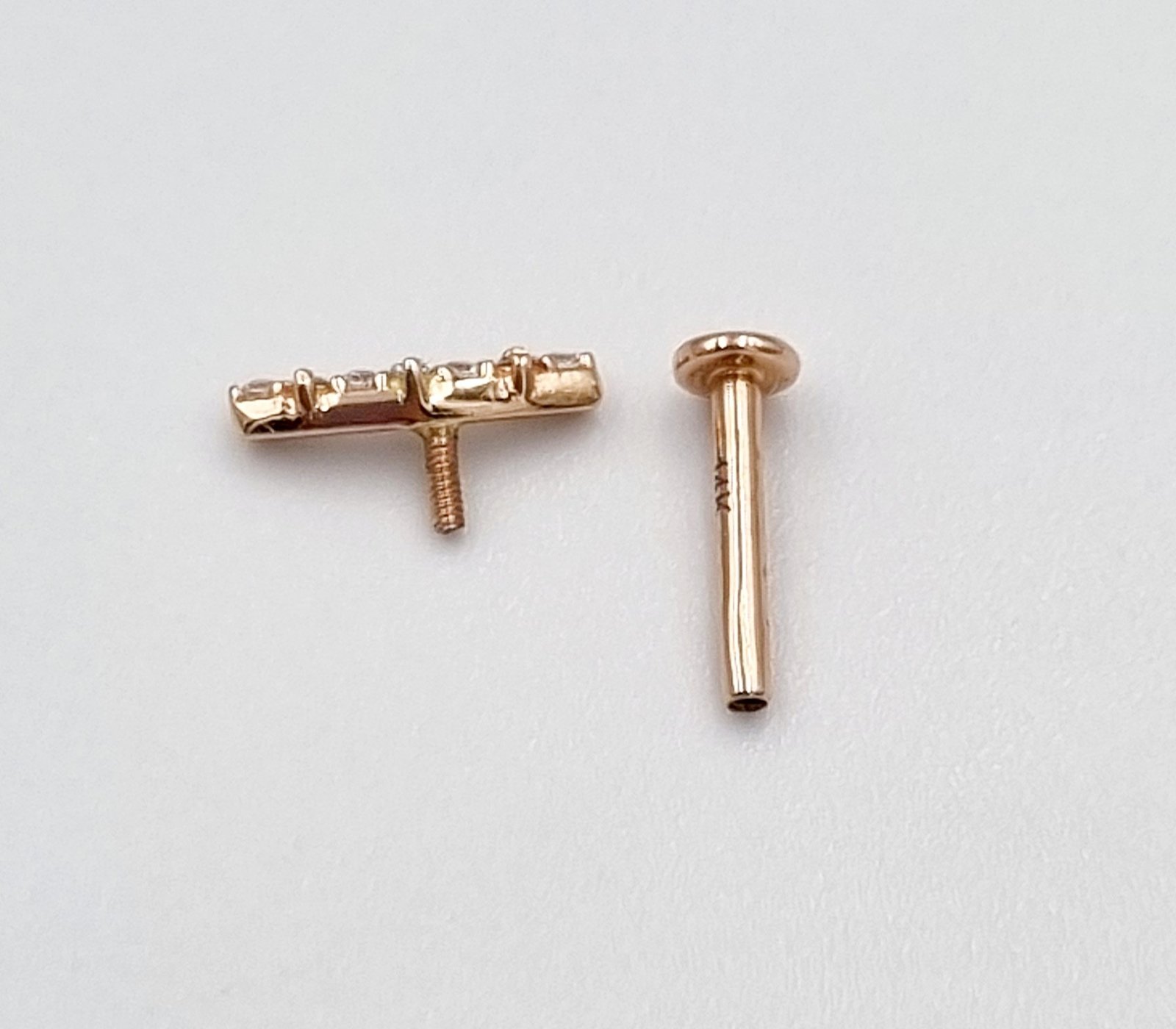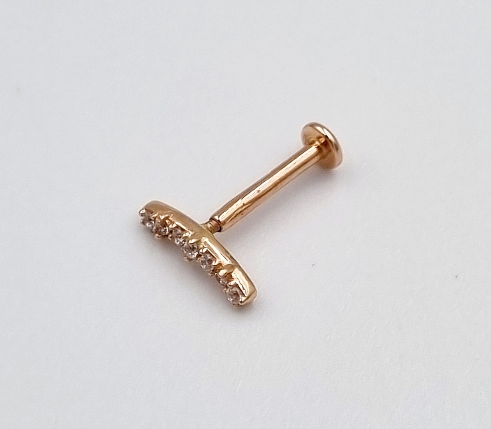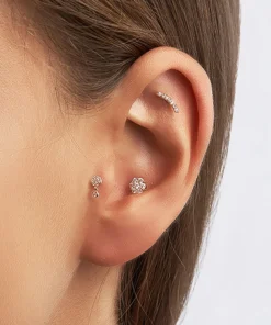 Auksinis užsukamas pirsingo auskaras į ausies kremzlę.