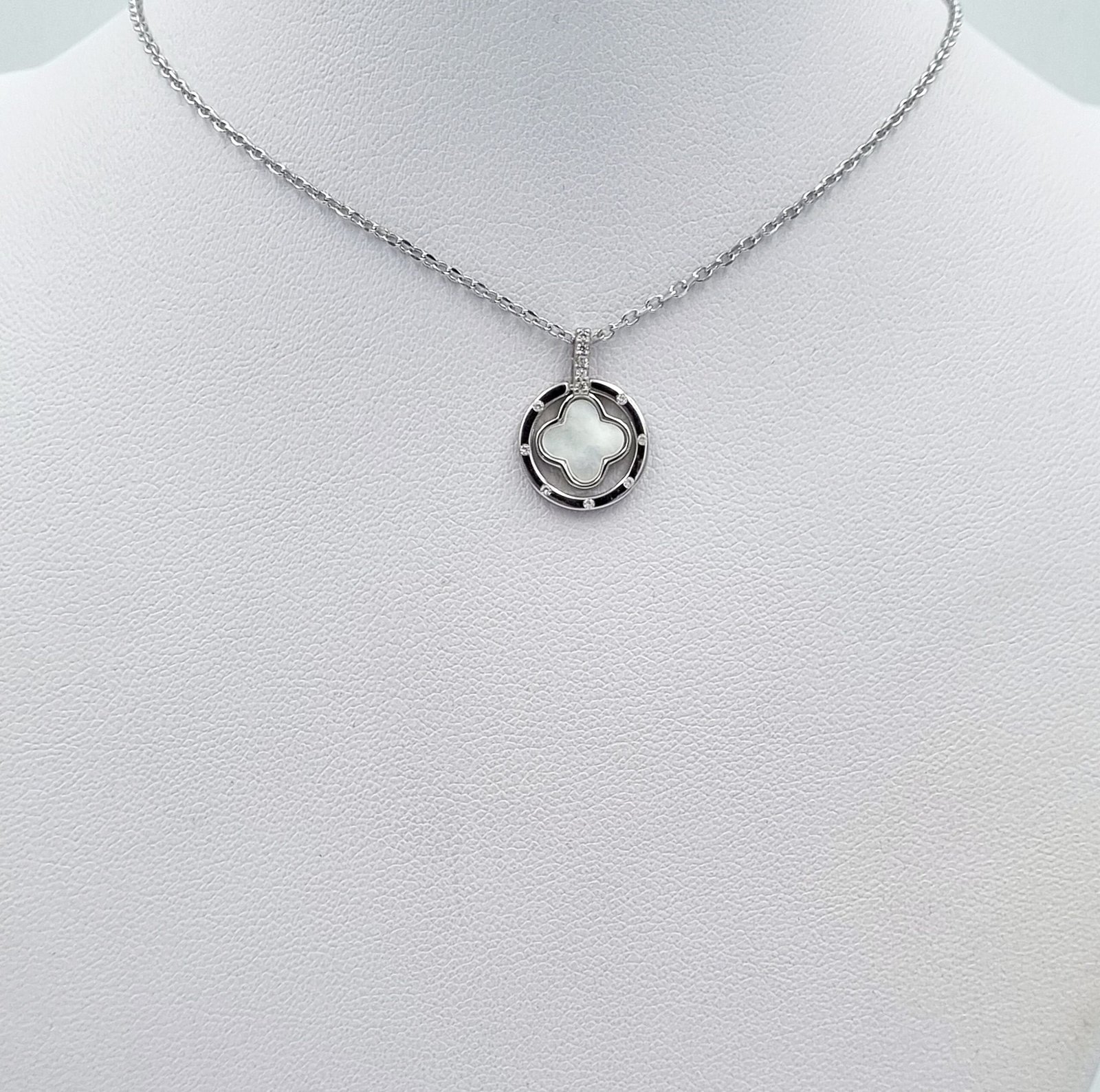 Sidabrinė rodžiuota grandinėlė su cirkonio akutėm ir perlamutru.