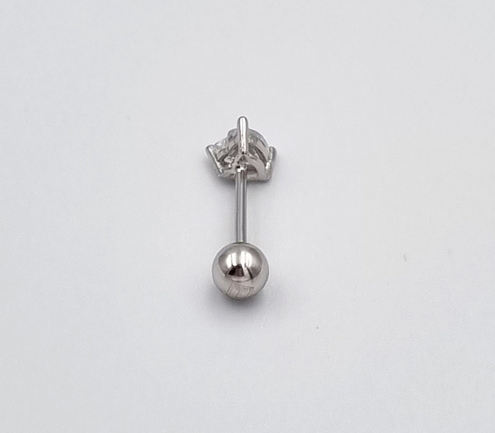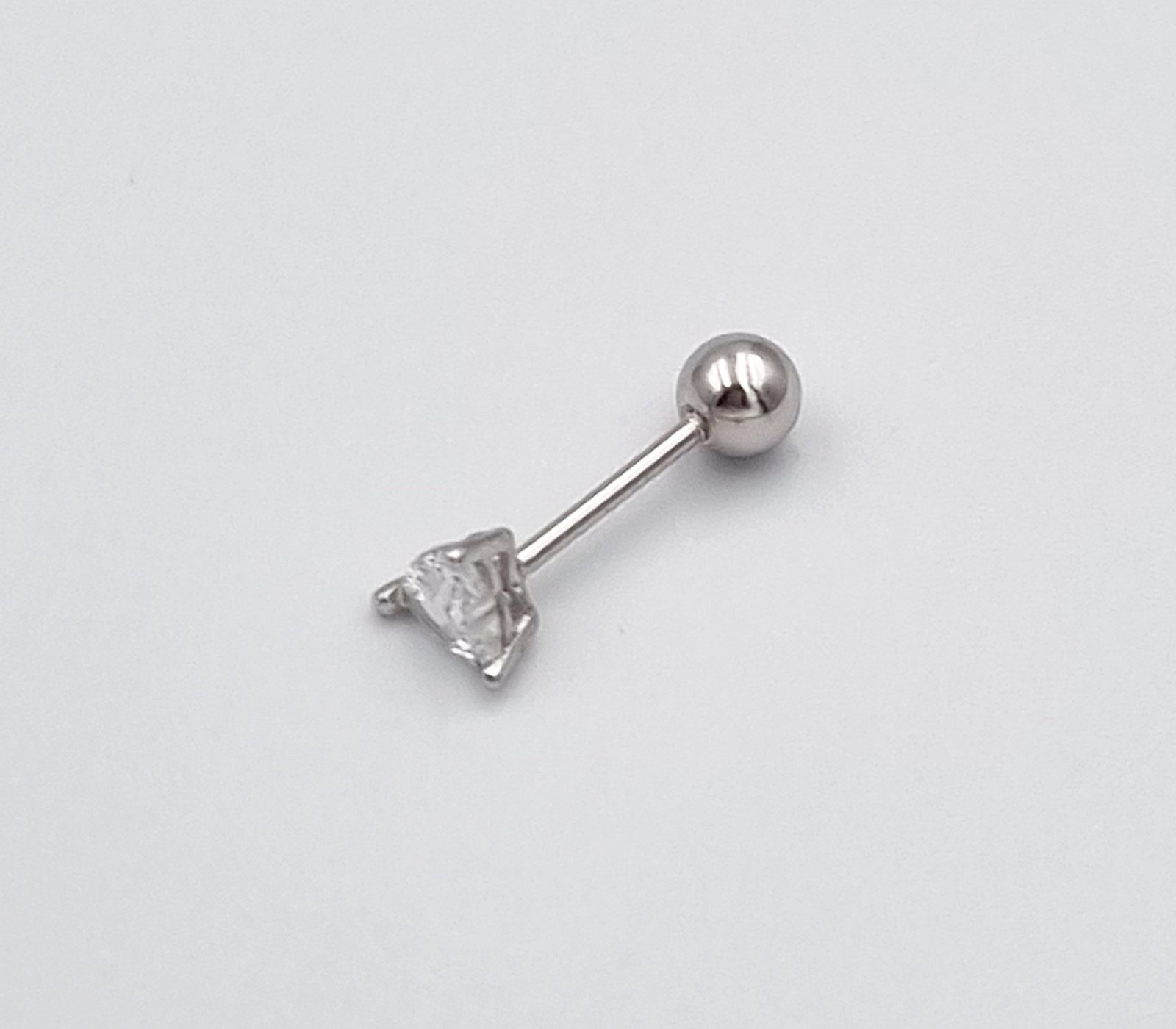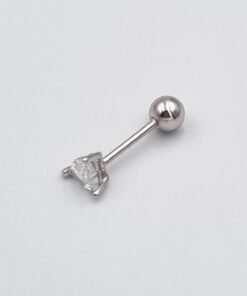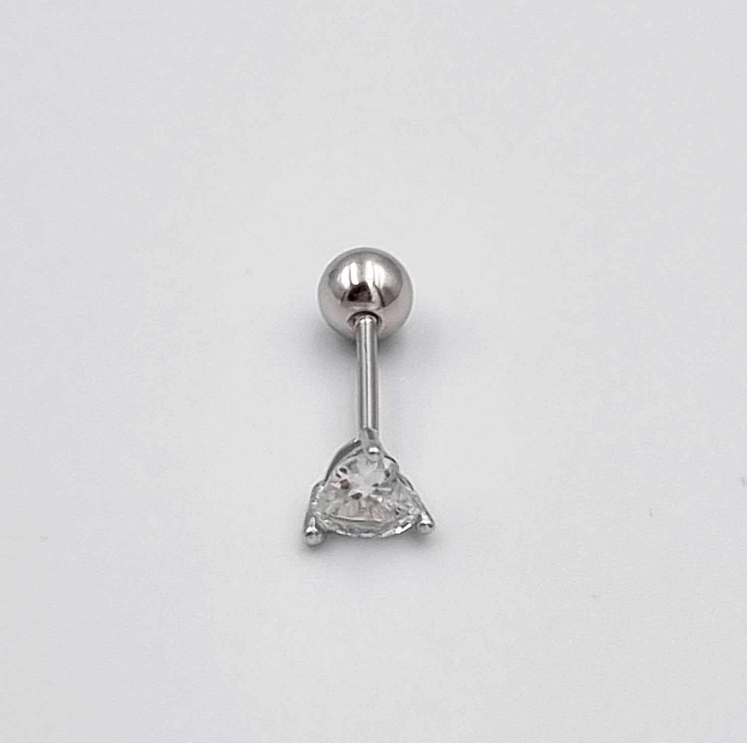 Širdelės formos sidabrinis užsukamas pirsingo auskaras į ausį su cirkonio akute.