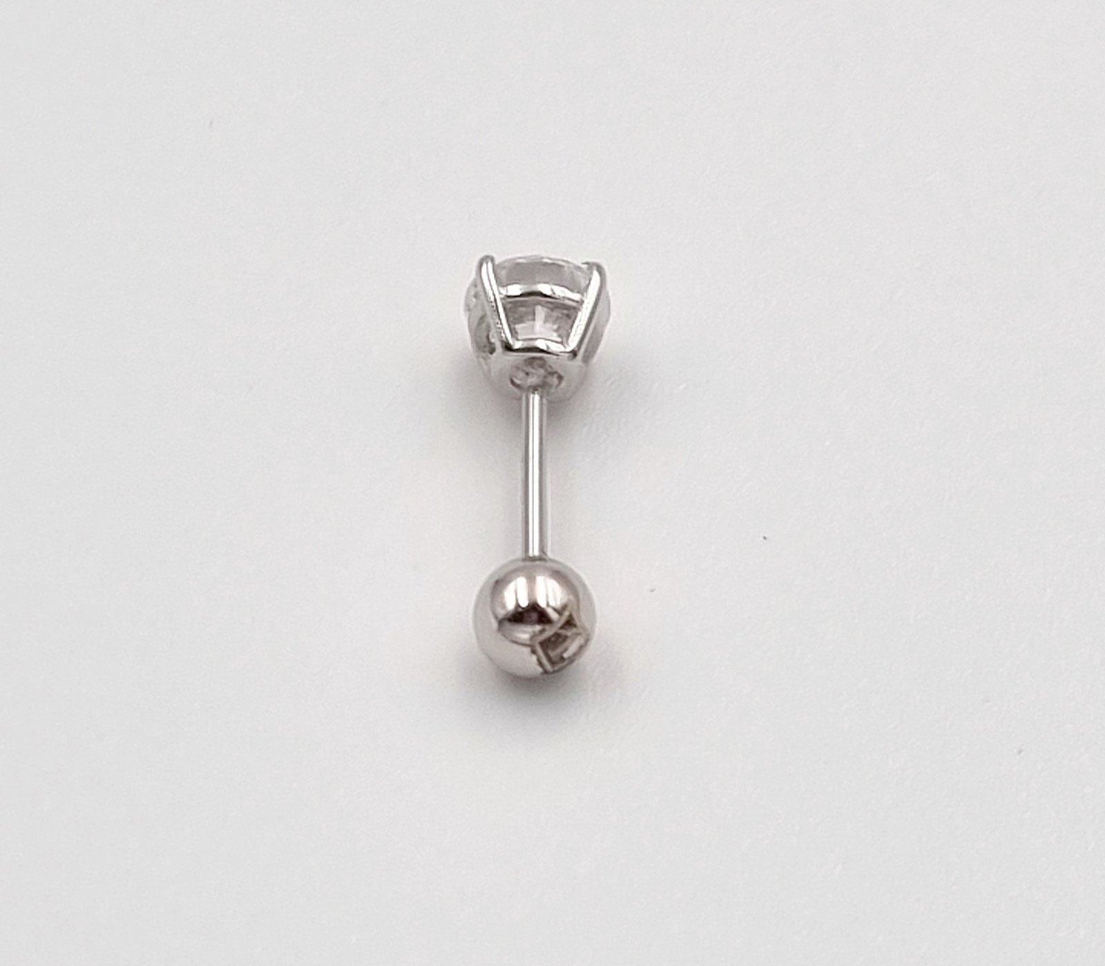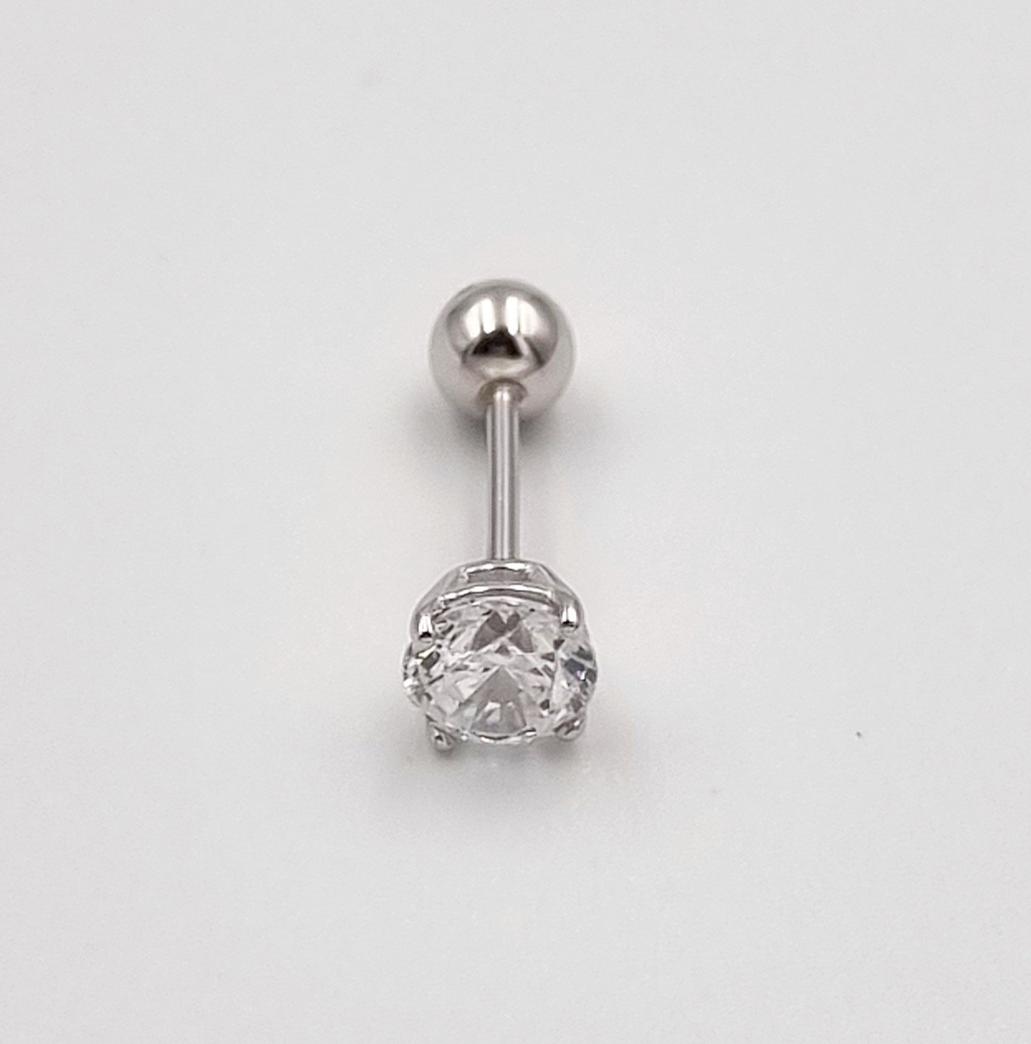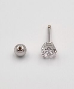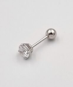 Sidabrinis užsukamas pirsingo auskaras į ausį su cirkonio akute.